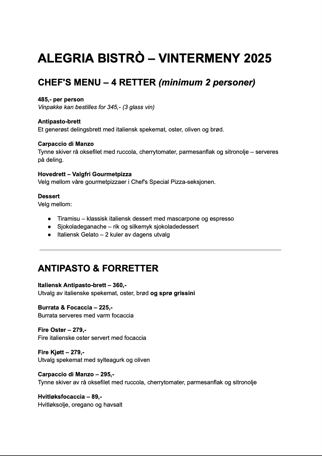 Er du i Heggedal og ønsker en matbit? Kom innom oss i Alegria Bistrò i dag for et hyggelig besøk og et godt måltid.