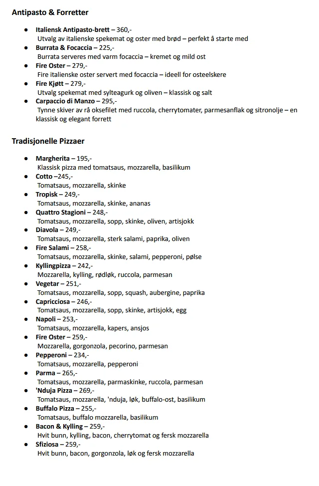 Hos oss får du den autentiske smaken av Italia med pizzaer laget med de beste råvarene og stekt i steinovn for en sprø og smaksrik opplevelse.